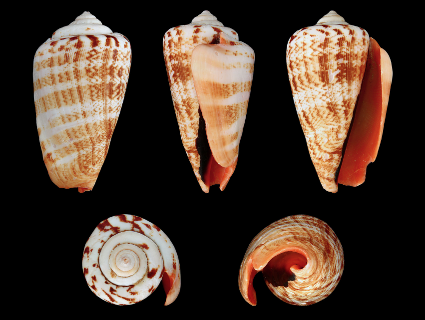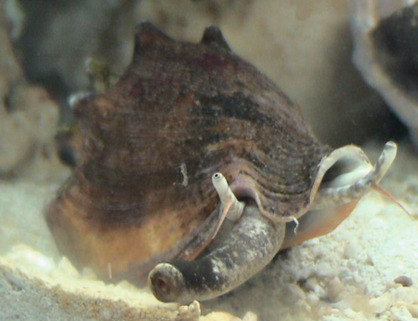这项研究选择的研究对象是红娇凤凰螺(Conomurex luhuanus),就是下面图片中这种海螺,有些地方会把这种海螺当成食物。