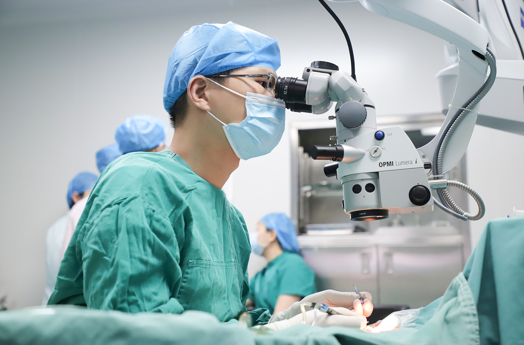(▲李茂炎为李先生行飞秒激光辅助白内障手术)