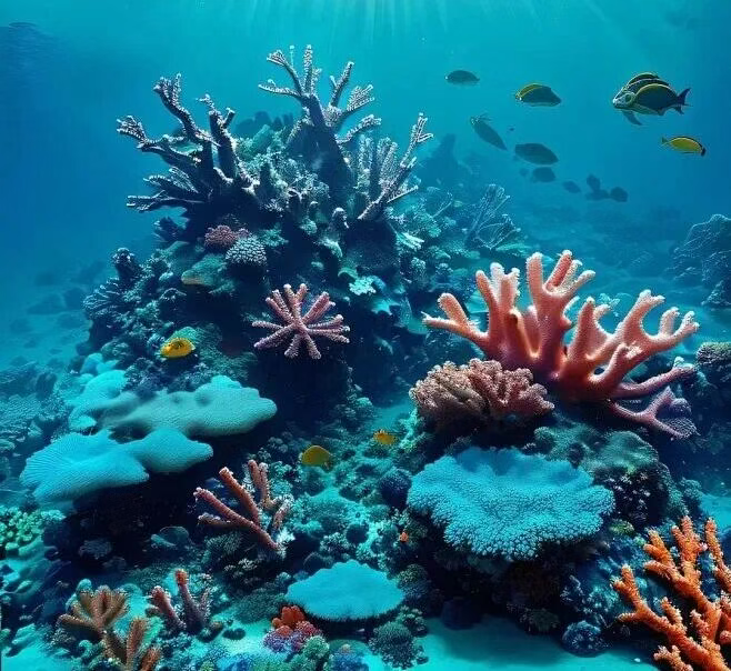 但珊瑚礁特别脆弱:现在海水升温不说,还老遭遇“海洋热浪”(就像陆地热浪,海水短期异常变热)。一热,和珊瑚虫共生的虫黄藻就会跑掉或死掉——虫黄藻不仅给珊瑚上色,还帮它供氧供能。没了虫黄藻,珊瑚会变白变弱,这就是“珊瑚白化”,要是时间长了,珊瑚虫自己也会死,珊瑚礁就彻底没救了。