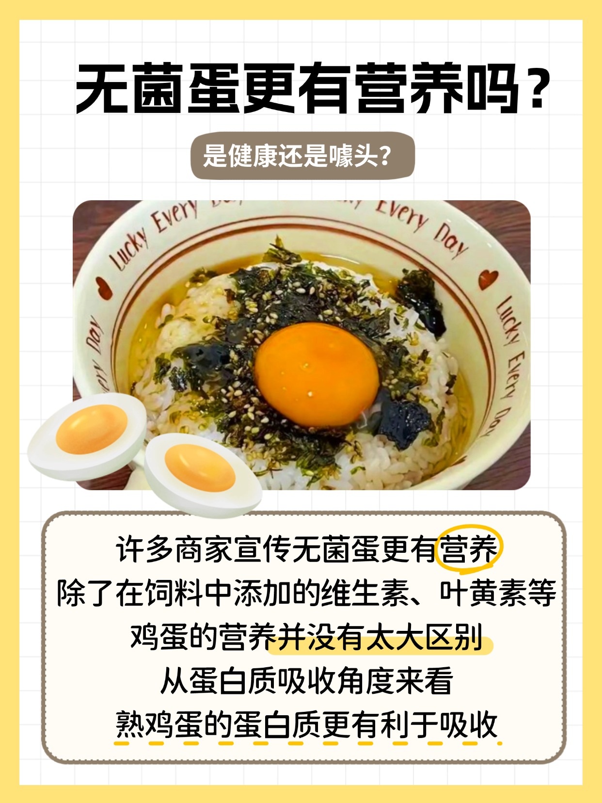 商家爱吹嘘无菌蛋加了维生素、叶黄素……但实际普通鸡蛋该有的蛋白质、卵磷脂它都有!营养差异微乎其微,别为这多花钱~