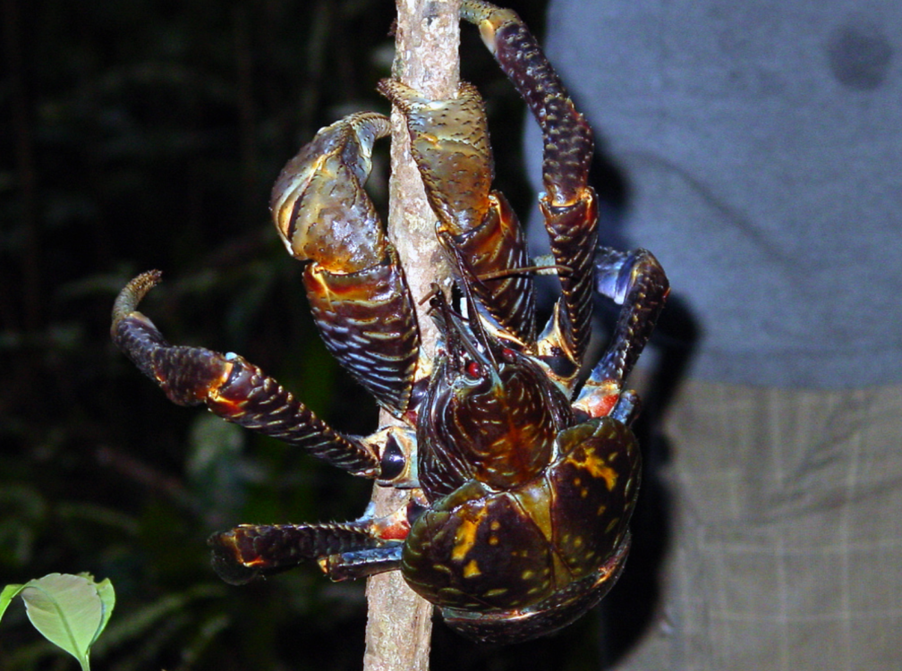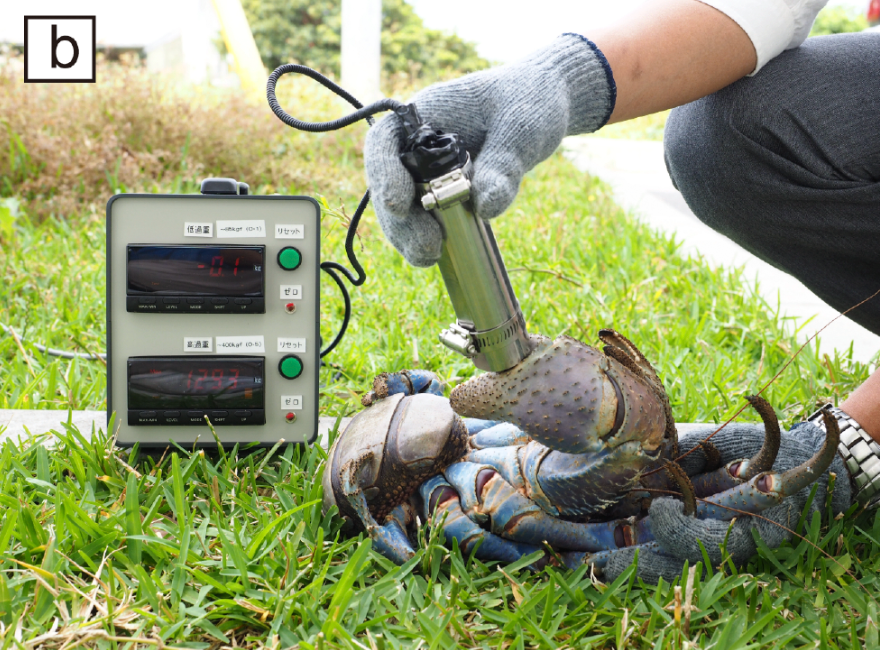 [1] Oka, S. I., Tomita, T., & Miyamoto, K. (2016). A mighty claw: pinching force of the coconut crab, the largest terrestrial crustacean. PLoS One, 11(11), e0166108.