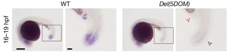野生型与在缺乏5DOM的斑马鱼胚胎的泄殖腔((图片来源:参考文献[1])