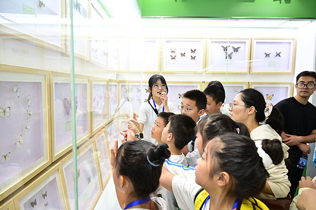 随后,师生们来到了湖南农业大学袁隆平科学家精神展示馆与标本馆,在这里感受科学的厚度与温度。在展示馆内,袁隆平院士的科研手稿、实验记录、杂交水稻实物模型等珍贵展品,系统再现了他“一生耕耘、一心为民”的科研历程;讲解员结合“三系法”杂交水稻培育过程中的关键突破与院士在田间地头忙碌的影像资料,深刻阐释了“脚踏实地、勇攀高峰”的科学家精神,引导学生深刻理解了“科学研究不仅需要智慧,更需要坚守与奉献”。标本馆内则汇集了丰富多彩的珍稀动植物标本,不仅展示了生物多样性之美,也传递了生态平衡与环境保护的科学理念,进一步拓展了学生们的科学知识视野。