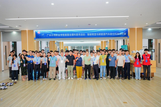 为响应全国科普月号召,推动科技创新与科学普及协同发展,广州华商职业学院联合增城经济技术开发区科技创新局、增城区科学技术协会,以“智享科技·绿动未来”为主题,成功举办“智能制造与新能源汽车前沿科技体验展”。活动通过“权威讲座+沉浸式体验+云端研学”的多元形式,吸引百余名师生、市民及科技爱好者参与,共赴一场科技与绿色交融的科普盛宴。