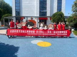 宁波大学材料科学与化学工程学院青年志愿者协会蔚蓝小菜花科普团进福利院,开展“两弹铸魂・星火润心”——“两弹一星”红色精神宣讲活动。这场专为福利院小朋友设计的活动,将历史记忆、科学知识与精神传承融为一体,通过趣味课堂、互动实验与情景演绎,让“两弹一星”精神的种子在孩子们心中悄然萌发。