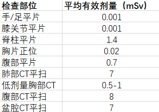 影像检查中的辐射剂量都是经过严格的控制和优化的,以确保其安全性。以下是常见检查的辐射剂量: