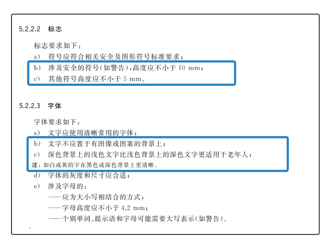 《GB/T老年人36947-2018面向老年人的家用电器用户界面设计规范》中对适老化家电上的标志及文字均有相应的设计要求。