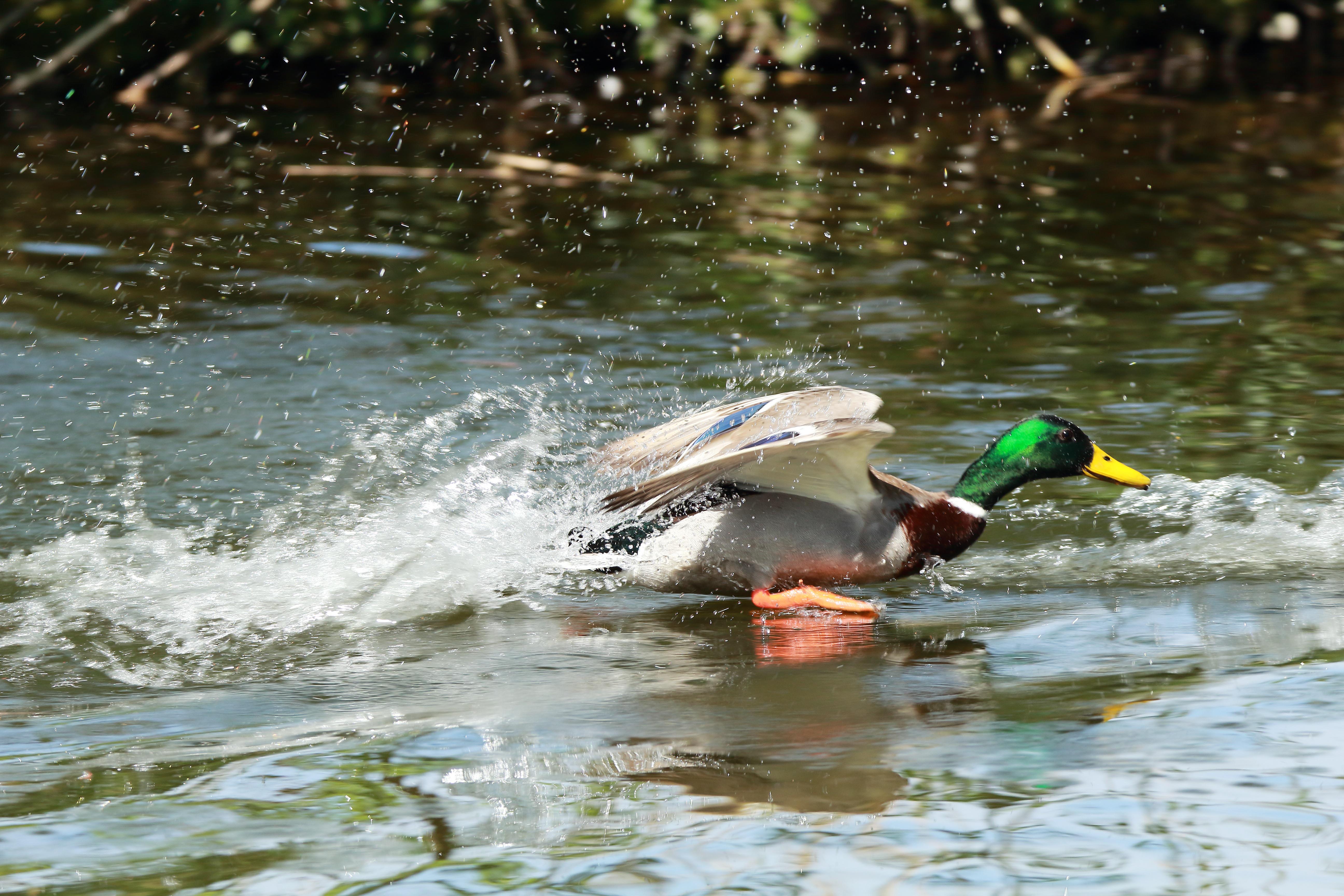 绿头鸭在水面助跑起飞(图片来源:Pixabay)