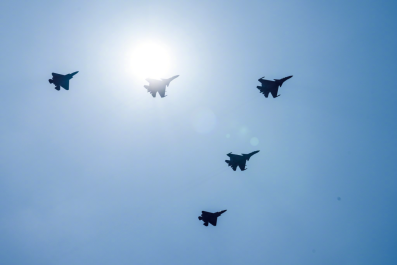 歼-15DT、歼-15T和歼-35编队