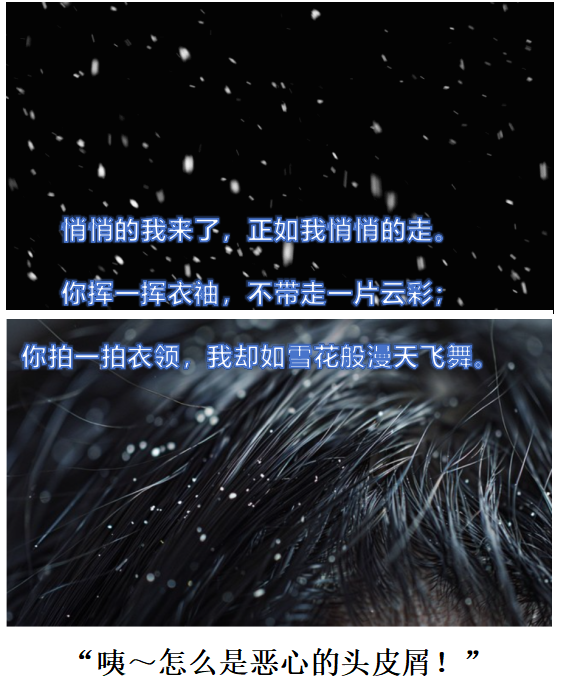 其实每个人都有头皮屑,它是头皮新陈代谢脱落的角质细胞,正常情况下,角质细胞脱落很少、很小,不会被明显地看到。但在一些情况下,如湿度变化、季节变化、创伤或精神紧张等,头皮角质细胞发生不正常脱落,就会形成肉眼可见的纷纷扬扬的“雪花”现象。为了保证我们头皮健康,您可以养成以下生活习惯。