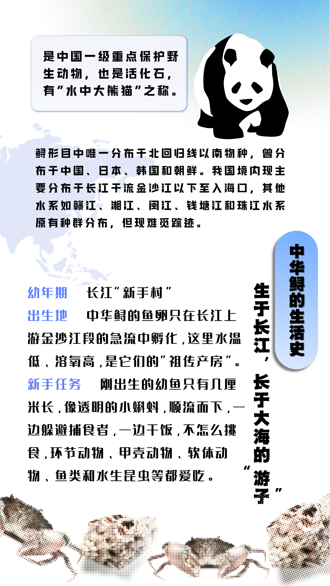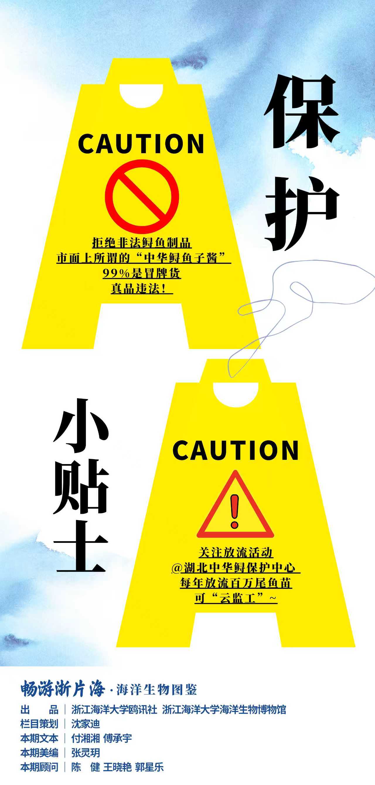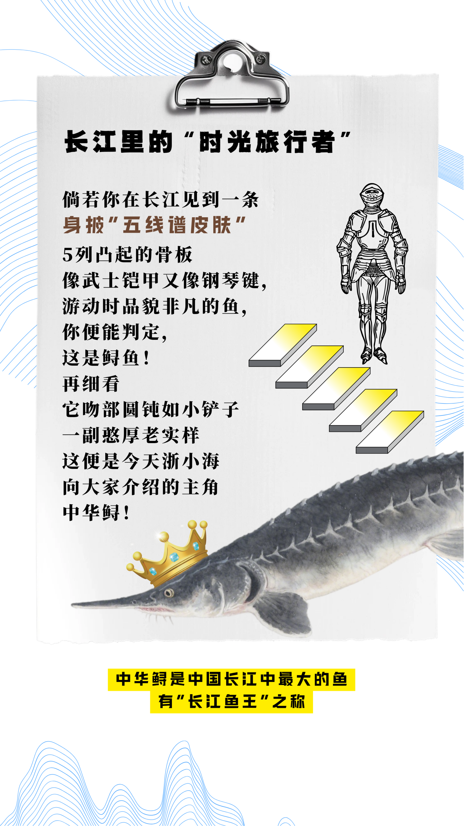 图文简介: 【“浙里科普”优质资源展播 | 《海洋生物图鉴之中华鲟》】倘若你在长江见到一条身披“五线谱皮肤”,5列凸起的骨板像武士铠甲又像钢琴键,游动时品貌非凡的鱼。你便能判定这是鲟鱼!(来源:浙江海洋大学)