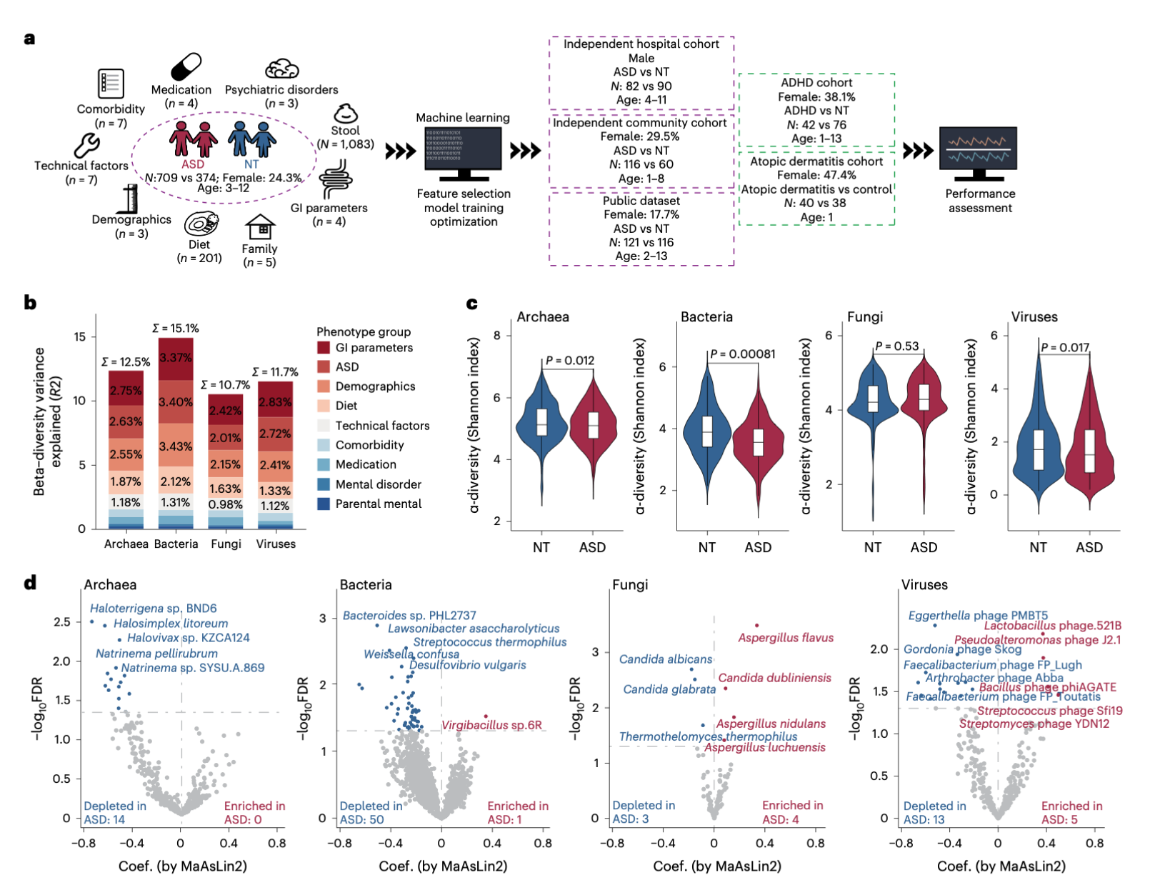 结果显示,ASD 儿童肠道中存在显著的多界紊乱模式: