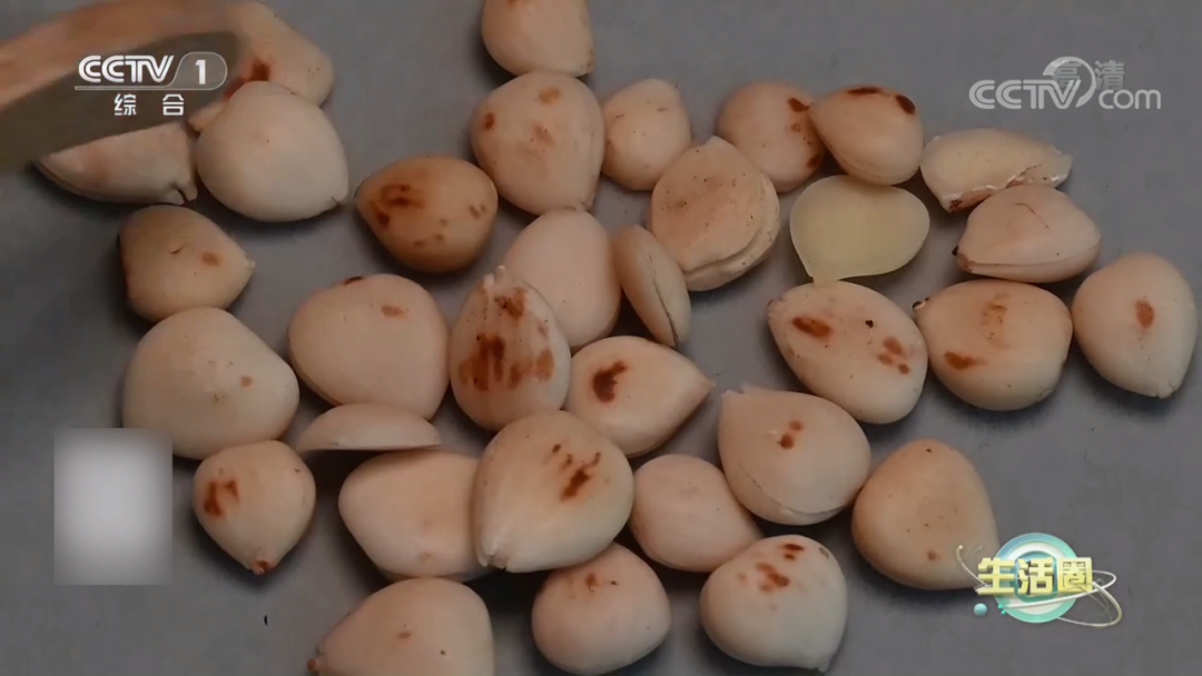 个头较大,颜色较浅,形状较为对称,味甘性平,药性相对平和,常用于制作药膳,具有生津润燥、降气化痰的功效。与牛奶、赤小豆、干百合等食材搭配制成的杏仁茶,具有润肺化燥、健脾利湿的功效,适合肠胃不适的人群。