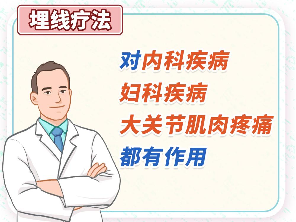 埋线治疗内科病效果最好的包括消化不良,腹痛,腹胀,便秘,腹泻,胃肠炎,哮喘,咳嗽,过敏性鼻炎,早期高血压,糖尿病,脂肪肝,失眠,焦虑等,疼痛类疾病主要为各类关节炎,包括颈肩部疼痛,腰部疼痛,肩周炎等,通过埋线都能不同程度地改善症状。