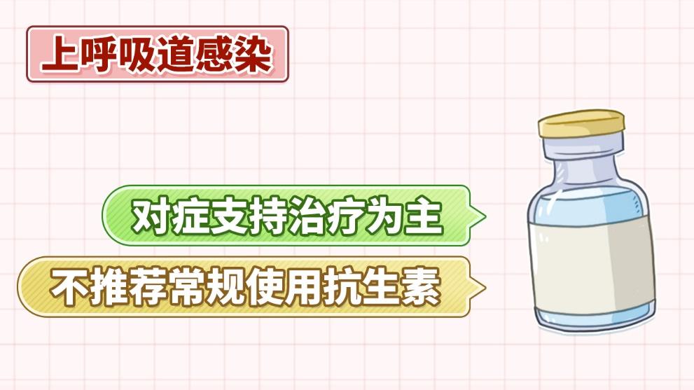 约90%以上的上呼吸道感染由病毒引起,抗生素无效,因此不推荐常规使用抗生素,除非合并细菌感染的情况下,在医生指导下可酌情使用。滥用抗生素可能引起肠道菌群紊乱,甚至增加抗生素相关性腹泻风险。