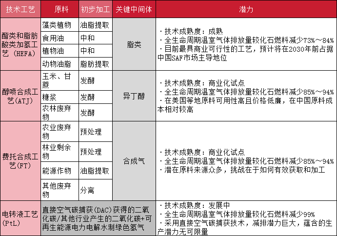 SAF主要生产路线及发展潜力。来源:财经杂志