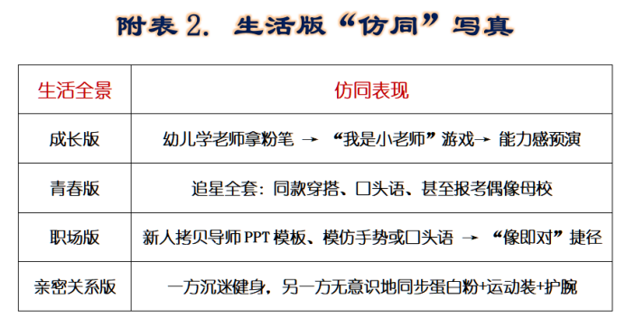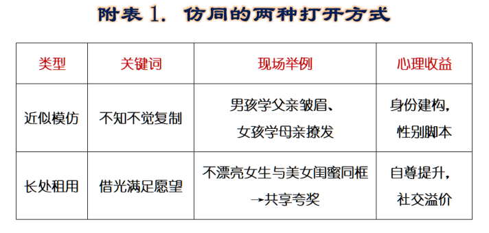 比如文章开头提到的“近似模仿”,这是最健康、最核心的仿同形式。主要包括: