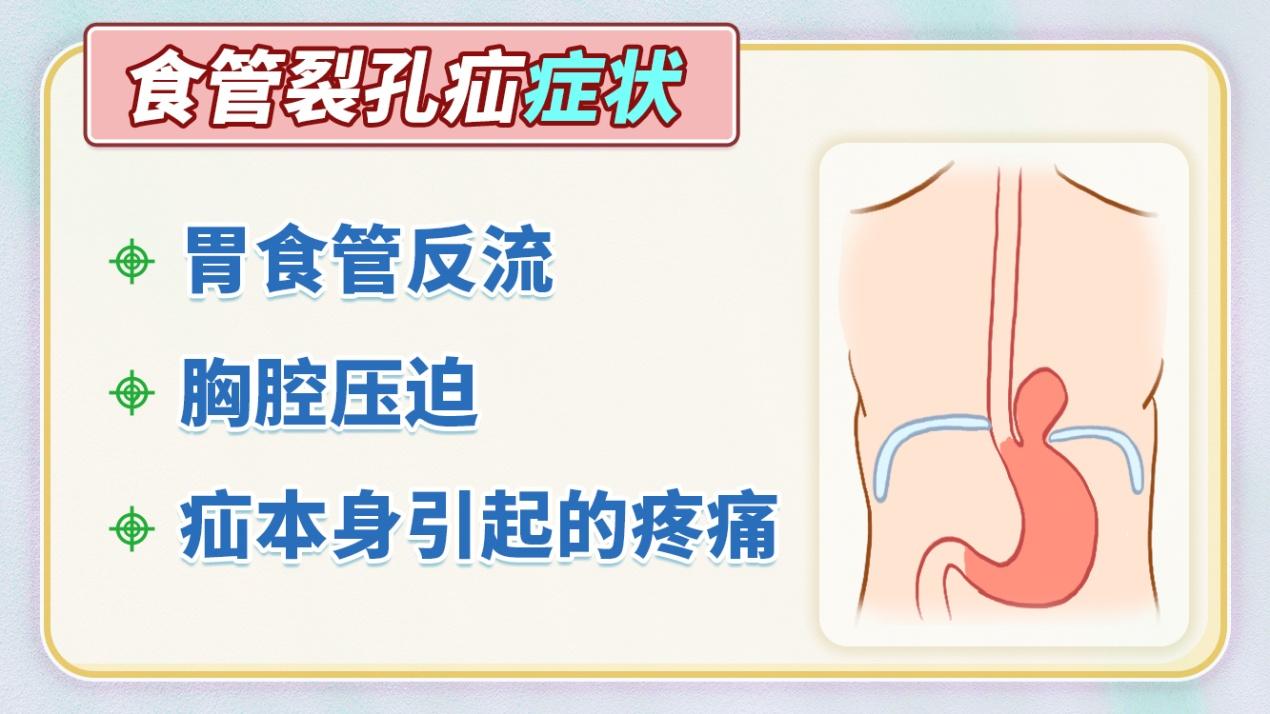 各类食管裂孔疝的症状既有共性,也因疝的类型、大小及疝入脏器不同而存在差异。其症状主要源于三个方面: