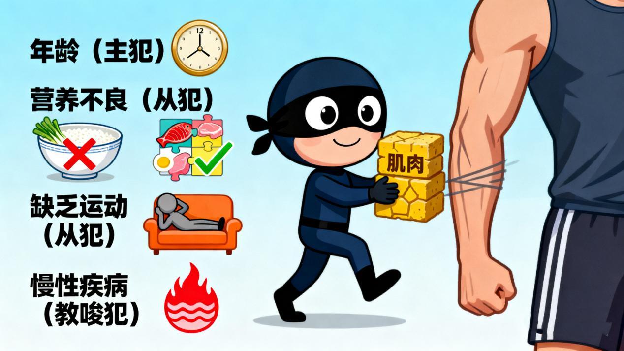 3、缺乏运动(从犯):“用进废退”是肌肉铁律。长期“静养”等于让肌肉“下岗”。