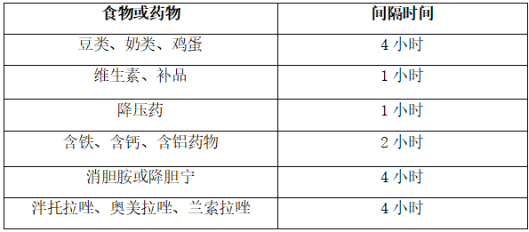 (三)优甲乐应与下列药物和食物隔开服用(仅供参考)