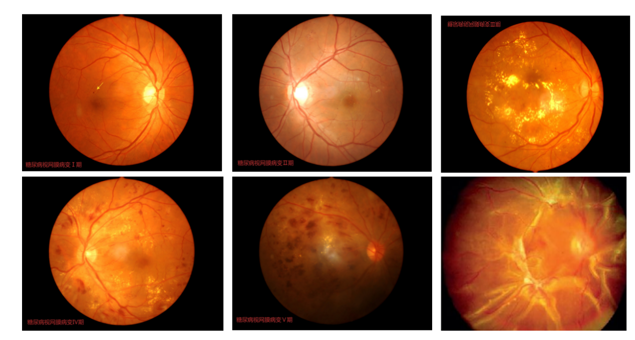 长期高血糖可引起视网膜微血管发生系列病变,最终导致糖尿病视网膜病变。高血糖损伤视网膜血管周细胞,增加血管壁通透性,形成微血管瘤、出血和硬性渗出;严重时出现新生血管,引发增殖性病变,甚至牵拉性视网膜脱离、失明。根据病变程度分为非增殖期和增殖期。