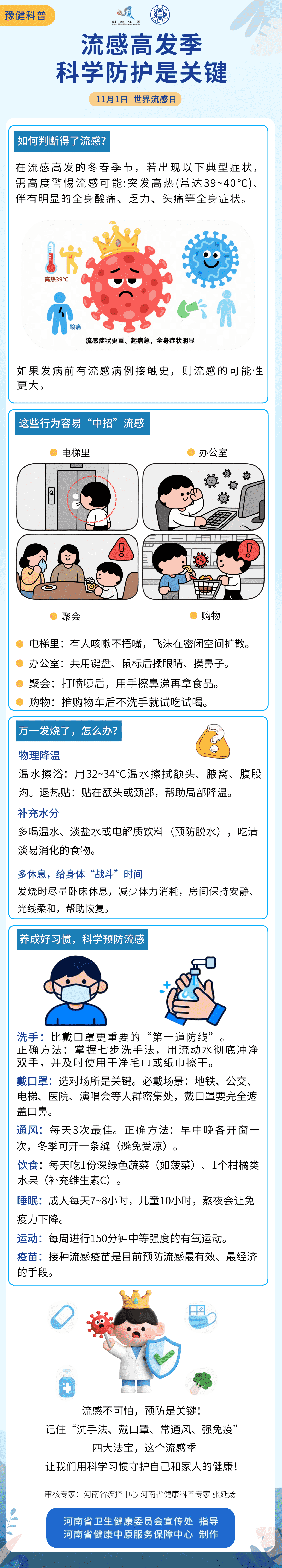 11月1日是世界流感日。流感是由流感病毒引起的急性呼吸道传染病,其传播速度快、季节性明显,秋冬季为高发期,需科学防治。