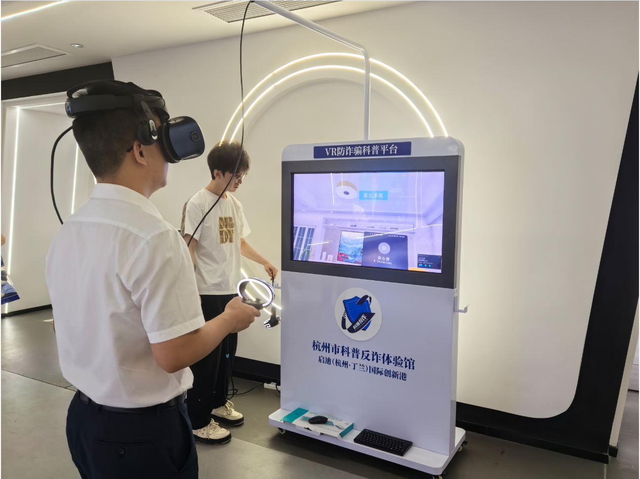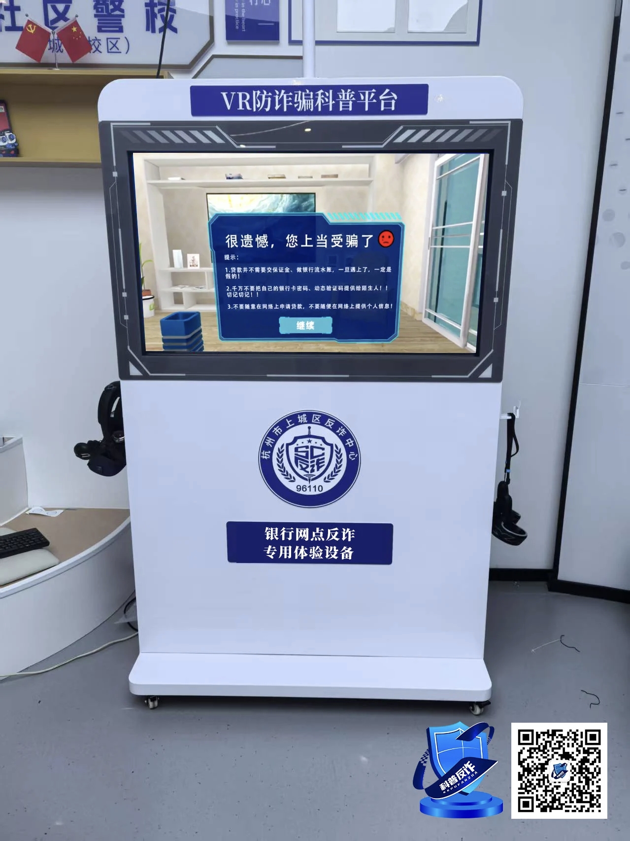 而智能反诈设备,正是破解传统反诈宣传困境的“利器”。杭州市反诈中心上城体验馆针对性研发的银行反诈智能设备,让反诈宣传从“单向灌输”变为“互动体验”:反诈机器人能通过智能对话互动,解答客户的诈骗识别疑问,无论是“如何区分正规理财与诈骗平台”,还是“收到陌生链接该怎么办”,都能结合真实案例拆解话术,让专业知识更易理解;VR体验机则打造沉浸式场景,客户戴上设备就能“走进”“客服来电退订会员”“导师带投虚假项目”等诈骗现场,直观看清诈骗分子的套路;反诈万花筒系统梳理诈骗逻辑,详细拆解网络贷款、刷单返利、冒充熟人或领导、冒充公检法、虚假投资理财等多类诈骗类型,帮客户理清骗局脉络。