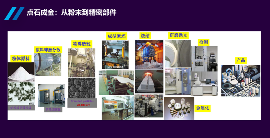 先进陶瓷的制备也是三步。首先把配制好的高纯、超细的陶瓷粉体塑造成所需形状的坯体,这是成型的过程。然后通过高温烧结,把坯体烧制成致密、坚固的陶瓷。最后进行切割、磨削、抛光等精密加工,以达成最终的精度。
