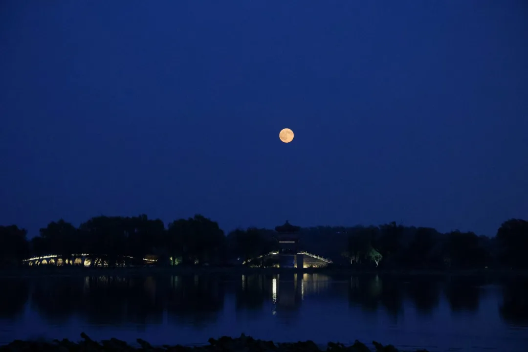△2025年10月7日,北京颐和园,古建筑与满月同框。