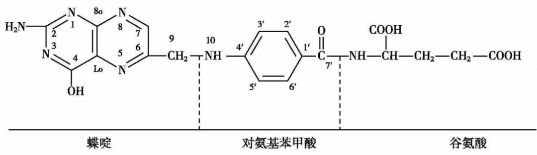 提到叶酸(folicacid,FA),是一种水溶性B族维生素,其结构如下图所示,由蝶啶、对氨基苯甲酸和谷氨酸3种成分组成。