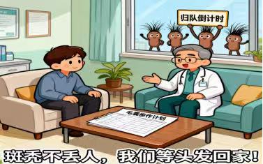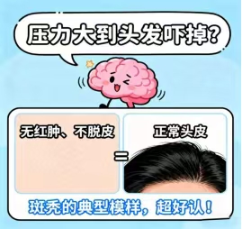 最后想跟大家说:斑秃不可怕,更不丢人。它就像皮肤偶尔长个痘痘,只是发生在了头发上。别因为一块秃斑就不敢扎马尾、不敢去理发店,更别用假发片闷着毛囊——给头皮透透气,保持心情轻松,反而能帮头发“早日返工”。如果实在心里没底,随时来诊室找我唠,咱们一起等头发“归队”!