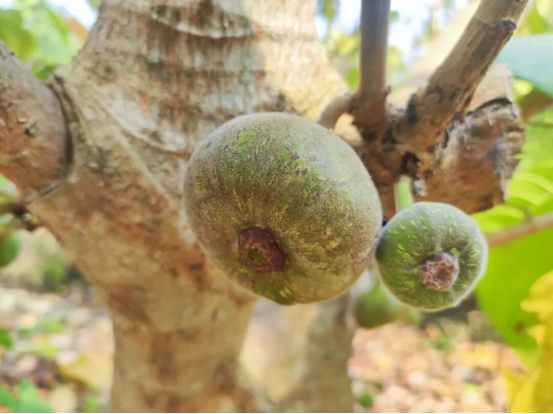 木瓜榕倒是与我们熟悉的无花果“沾亲带故”,同属“一家人”,是同一家族中的两位成员,木瓜榕也被称为大无花果。与无花果类似,它的雄花、雌花也是藏在果实内部的,从外表看起来,是找不到它的花的。