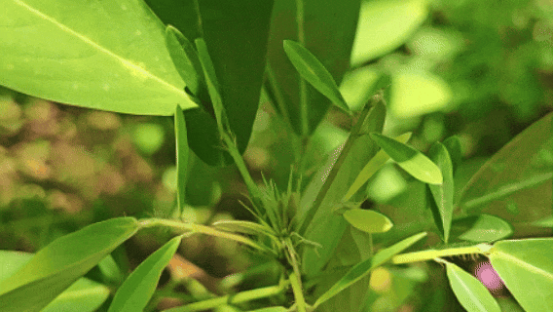 每年7-9月,跳舞草会绽放出浪漫的紫红色小花,为这场“植物舞会”增添一抹亮色。到了10-11月,枝头便挂满可爱的镰刀状荚果。神奇的是,这些“小镰刀”成熟后会自己“啪”地裂开~