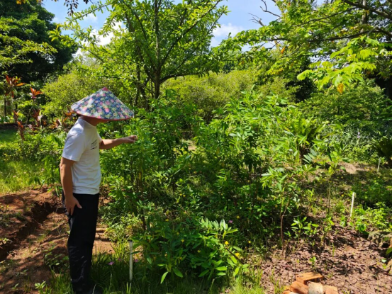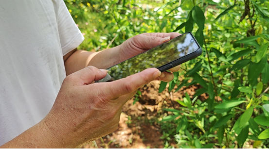 在跳舞草旁边用手机放音乐。姚瑶 摄