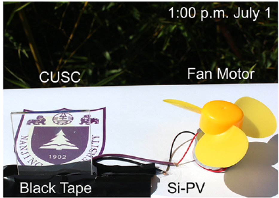 在阳光下驱动 10 mW 风扇(图片来源:参考文献[1])