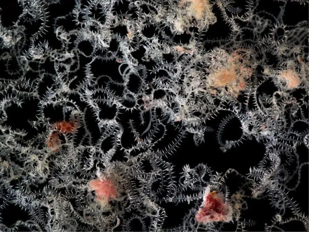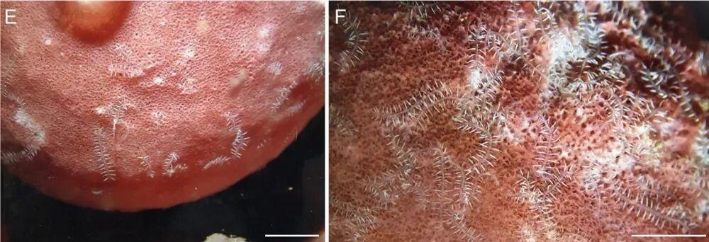 学名 Ramisyllis kingghidorahi 的裂虫科,栖息在 Petrosia 属的海绵里;图源:参考文献 [3]