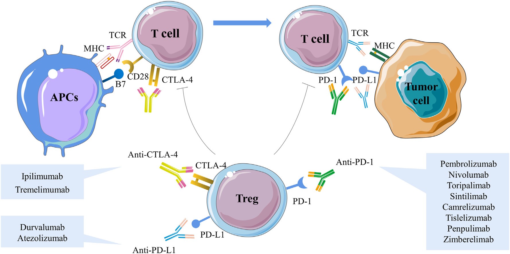 图1|免疫检查点抑制剂的作用机制