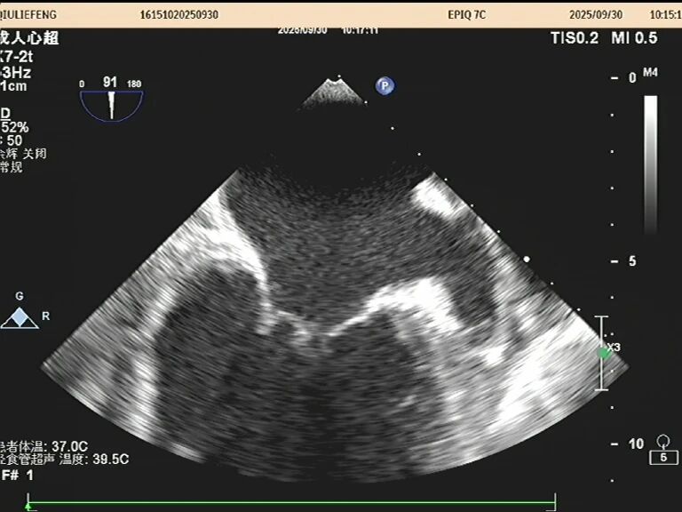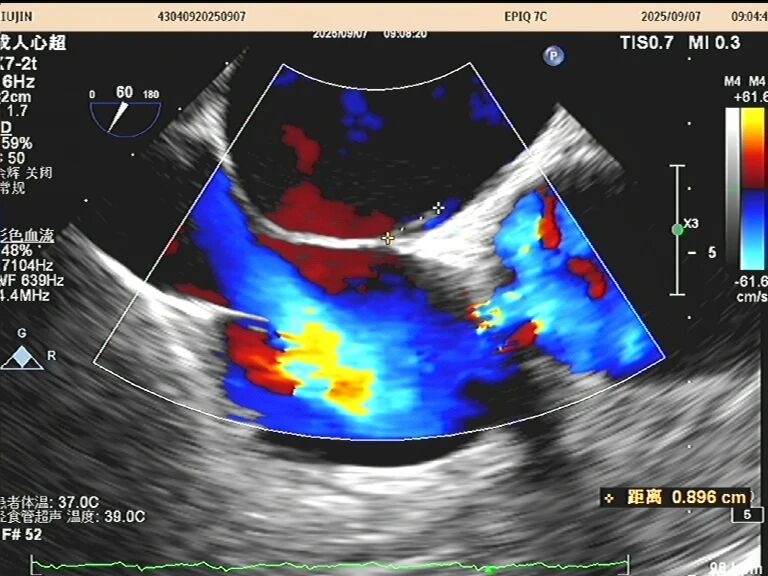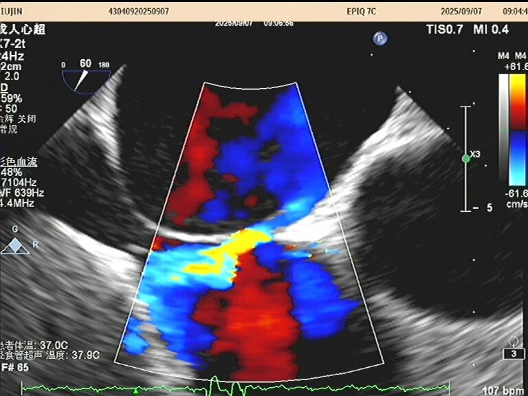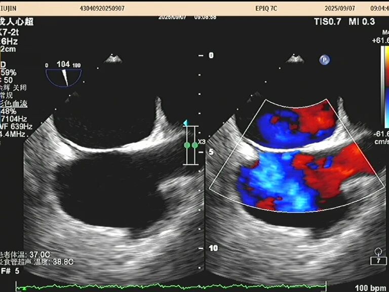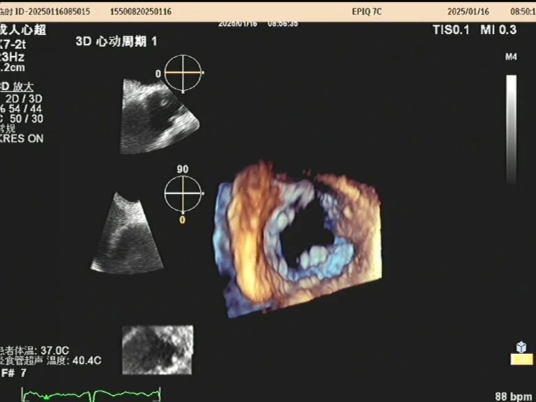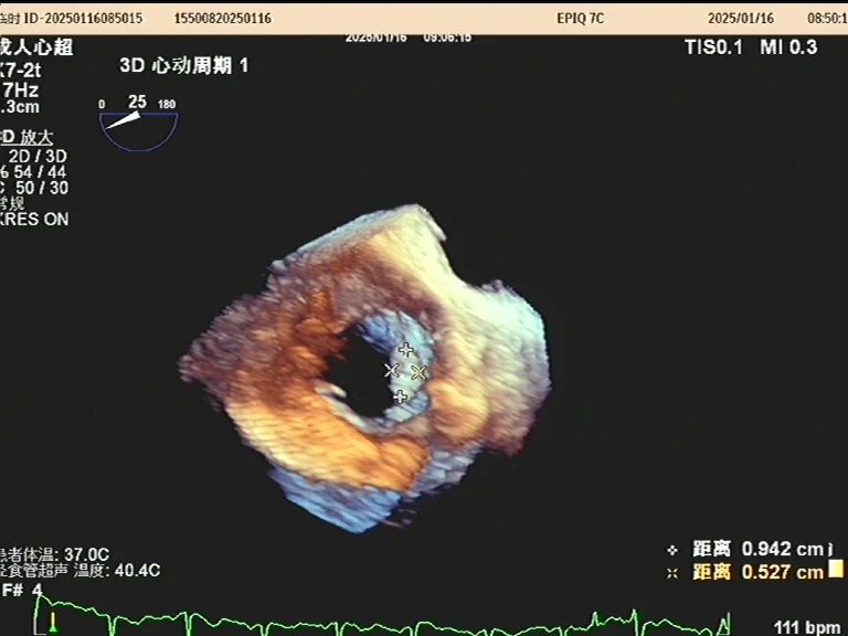 于是,一根如面条般柔软、顶端带着微型摄像头的探头,会从您的口腔缓缓进入食道。这个位置堪称完美,探头能紧贴着心脏,利用超声波为其拍摄一场无死角、超高清的“内部直播”。以前藏在背后的细微结构比如心耳里是否藏有血栓、人工瓣膜是否严丝合缝、心脏瓣膜上的小赘生物,此刻都一览无余。
