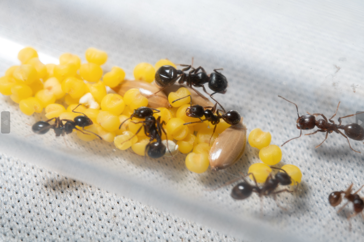另一方面,多数蚂蚁主要食物其实是昆虫这样高蛋白食物以及高糖的液体 ,比如像蚜虫的蜜露,真要想吃固体的种子可是一门高精尖的技术活。所以,蚂蚁会收集种子过冬,放在多数蚂蚁身上其实是误解。