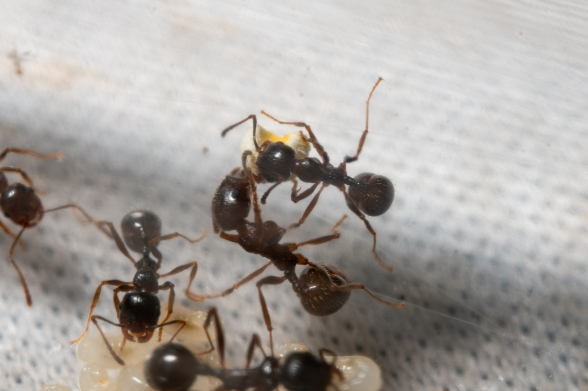 为了适配这份食谱,收获蚁的巢穴设计格外特别:一部分是靠近地面的“粮仓”,干燥的环境能让种子长期保存;另一部分则是深入地下数米的育婴房,蚁后、卵和幼虫大多在此生活——毕竟幼虫发育需要一定湿度。