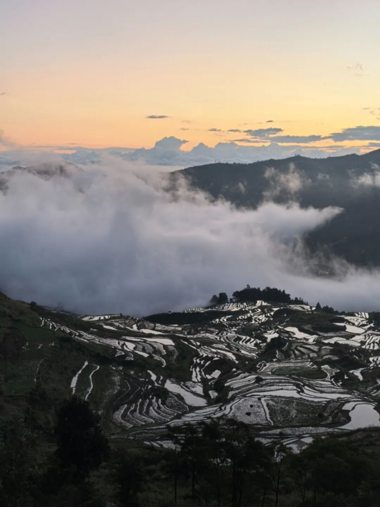 梯田是哈尼人智慧的集中体现。开垦梯田需要先将荒凉的“生地”通过翻耕、施肥、养护逐渐演变为能种庄稼的“熟地”,然后把“熟地”开成一阶一阶稳固的台地,最后开沟引水,修筑成梯田。