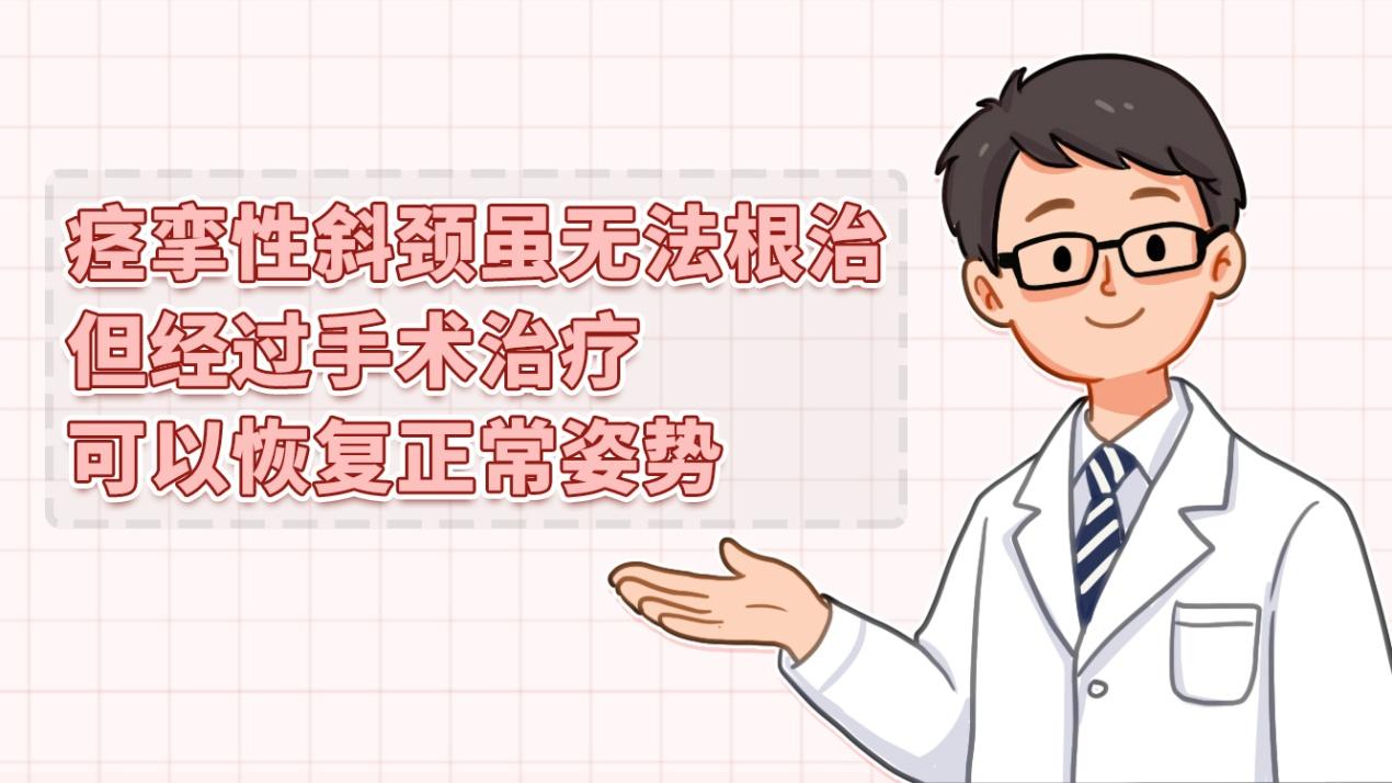 因为痉挛性斜颈的病因尚不明确,从理论上讲,痉挛性斜颈目前还无法根治,而且疾病的本质可能与大脑深部的某些结构有关。但我们可以通过手术治疗,再配合康复训练、理疗等方式,极大地改善患者的症状。患者脖子歪斜、严重影响生活,通过手术基本可以恢复正常姿势,不再对生活和外观造成困扰,从实际效果来看,是可以达到近似治愈的状态的。