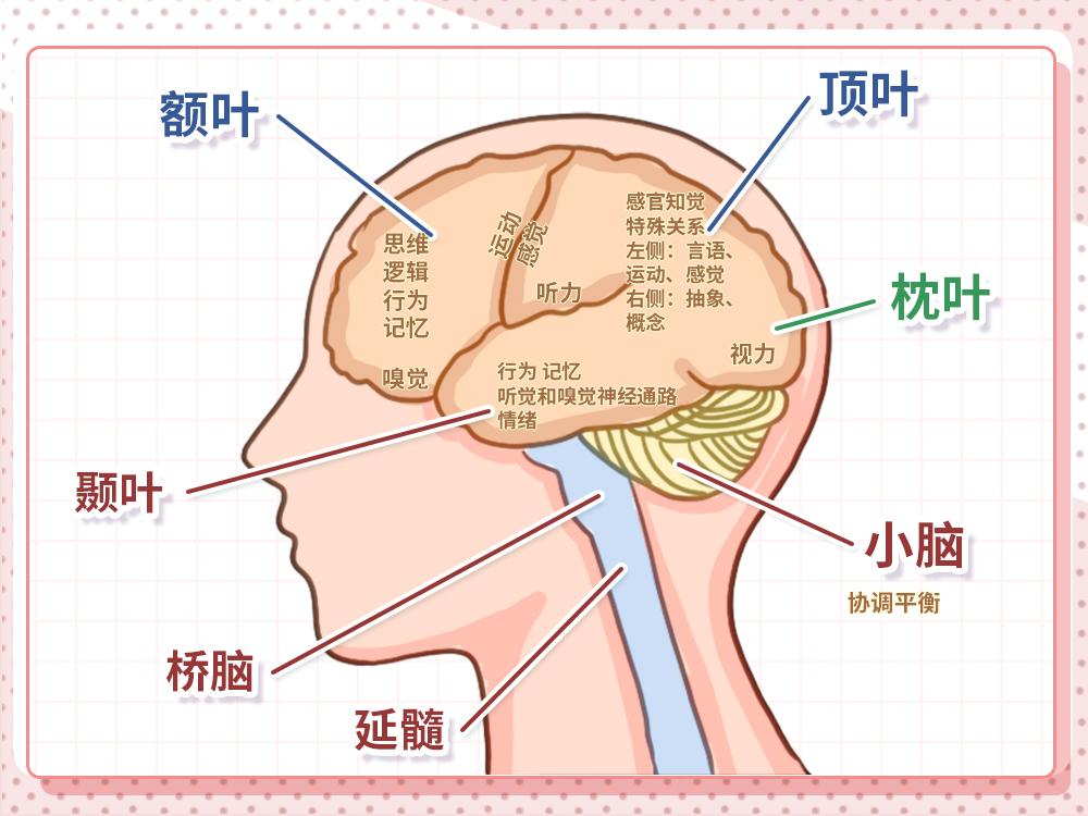 从定义上来说,脑瘫主要是由大脑问题引起的。大家看这张图就能知道,大脑结构非常复杂,所以脑瘫的类型,其实和大脑损伤的部位有关。