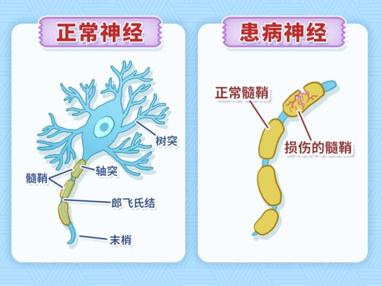 多发性硬化是一种主要影响中枢神经系统的慢性炎性疾病。它会导致神经纤维外层的保护层——髓鞘受损,从而影响神经信号的传导,引发一系列的临床症状。多发性硬化女性患者约为男性患者的两倍,主要侵袭青壮年,尤其是40岁左右的人群,已成为中国青壮年致残的第二大原因。