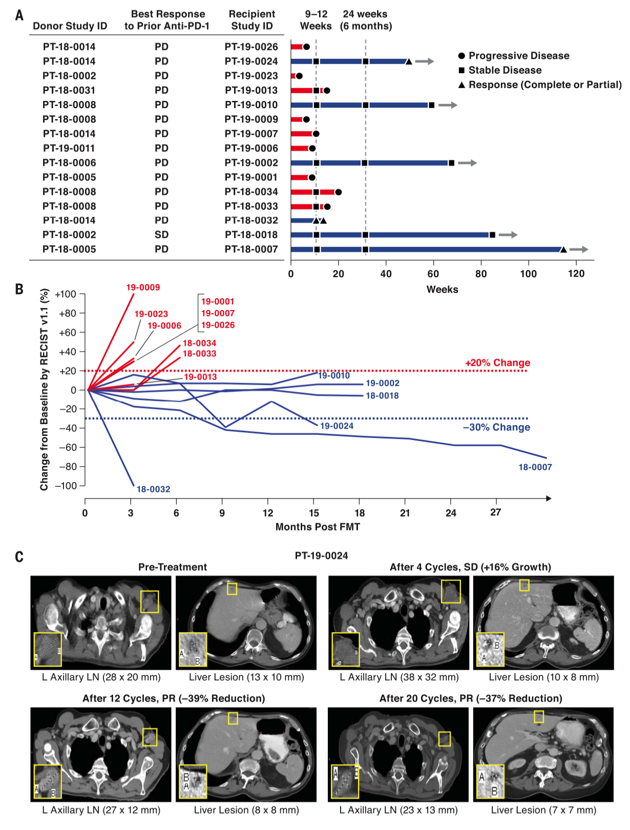 Davar D, Dzutsev AK, McCulloch JA, et al. Fecal microbiota transplant overcomes resistance to anti–PD‑1 therapy in melanoma patients. Science. 2021;371(6529):595‑602. doi:10.1126/science.abf3363