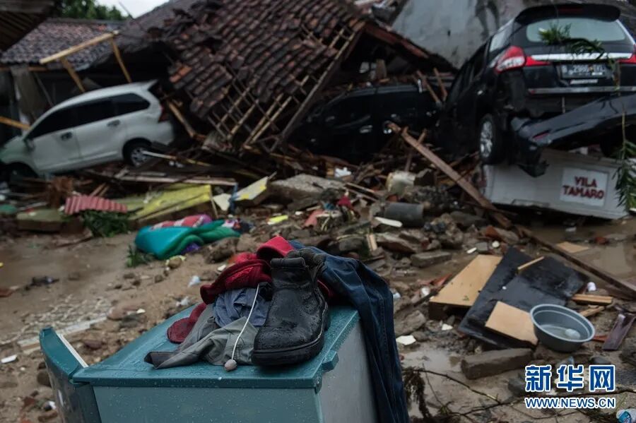 2018年12月23日,在印度尼西亚万丹省板底兰,海啸过后一片狼藉(图源:新华社)