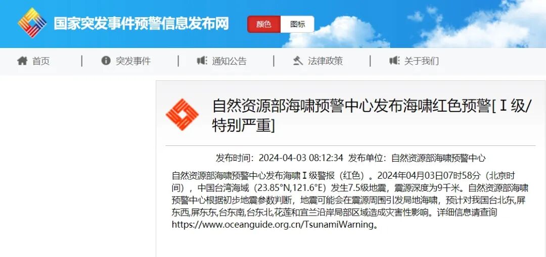 图源:国家突发事件预警信息发布网截图