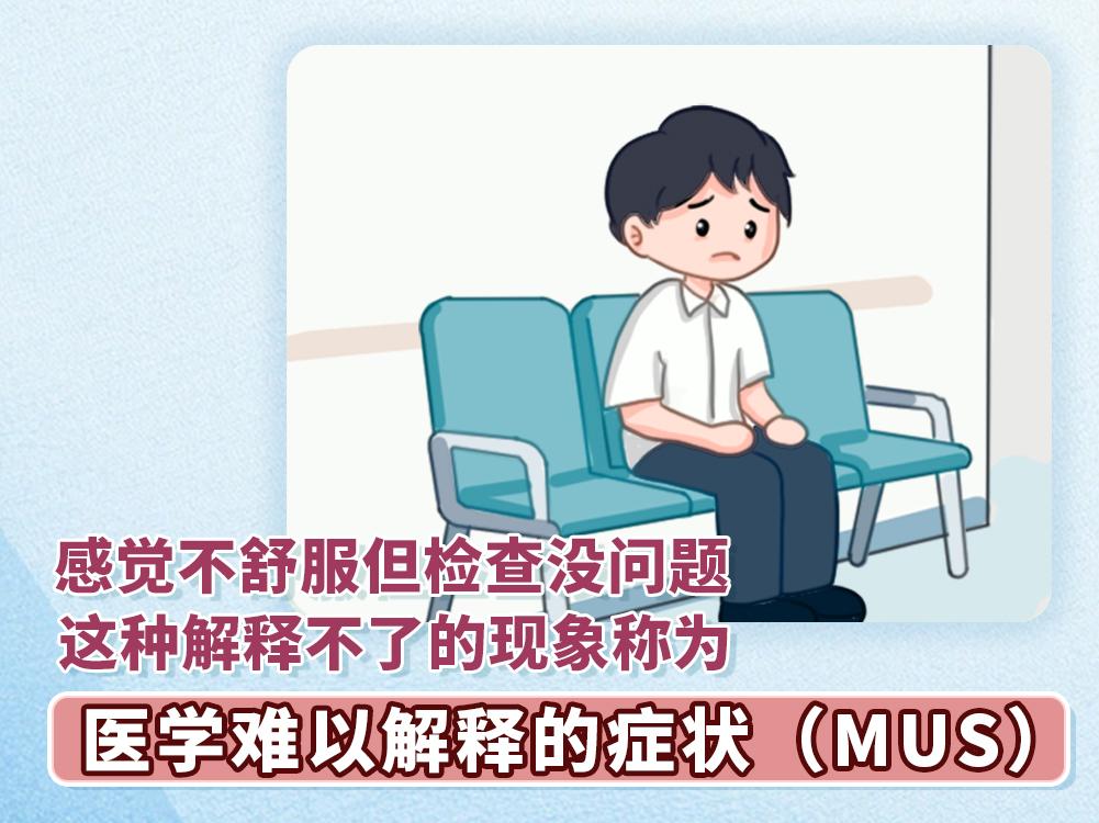 还有内分泌科,有的患者血糖偏高,怎么都降不下来,需要住院治疗。这时候就得看看他们的情绪状态,如果情绪很糟糕,又焦虑又紧张,血糖肯定降不下去。再比如手术科室的患者,有人因为腹痛就诊,外科医生怀疑有特定问题,打开腹腔处理完炎症等问题后,腹痛却依然存在,这是怎么回事呢?还有急性心梗的病人,急诊就诊后放了支架,血管已经通畅了,按理说应该没事了,可患者还是会觉得胸闷,和急性心梗发作时的感觉一样。这些情况很多都解释不了,其实这种“解释不了的现象”,就是所谓的“医学难以解释的症状(MUS)”。
