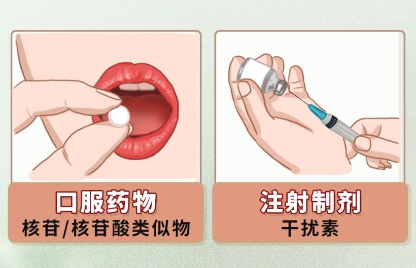 口服药物相对比较简单,每天用一次就可以。注射用的抗病毒药物,一星期注射一次。要根据患者的病情来决定是选择口服药物,还是注射药物,还是两者联合使用。