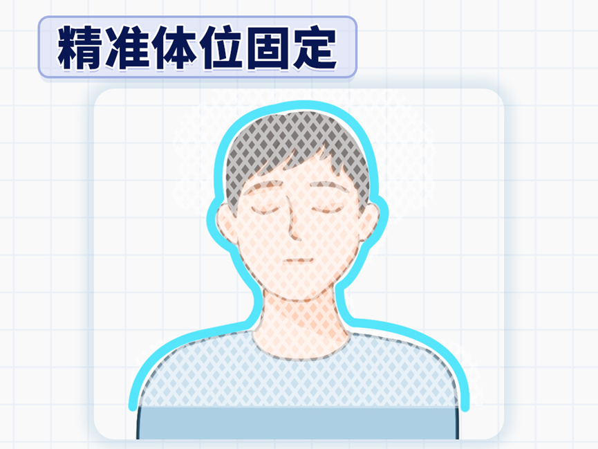 首先是精准的体位固定。患者就诊后,我们会先选择合适的治疗体位(比如仰卧,双手放于体侧),再使用热塑膜或真空垫等工具进行固定。以热塑膜为例,它原本是有一定厚度的硬质平板塑料膜,放入温水后会变软;将变软的膜迅速贴合在患者体表、头面部或肩部,待其随温度下降变硬后,就会形成完全适配患者身体外形的固定装置,从而实现体位的精准固定。